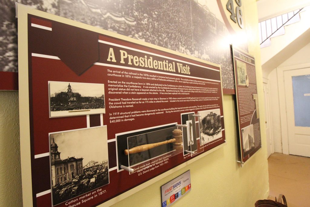 Our downstairs area is home to more exhibits along the walls, including our exhibit about the Courthouses of Grayson County and notable events that took place at the Sherman Courthouse. Did you like this? Share it!